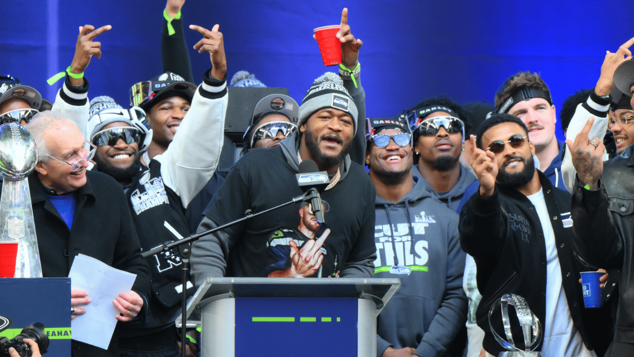 Donning a Seahawks “Cut for this” hoodie, complete with an SB patch and all, the former third overall draft pick took to the podium earlier today to give his official address to the 12th man.